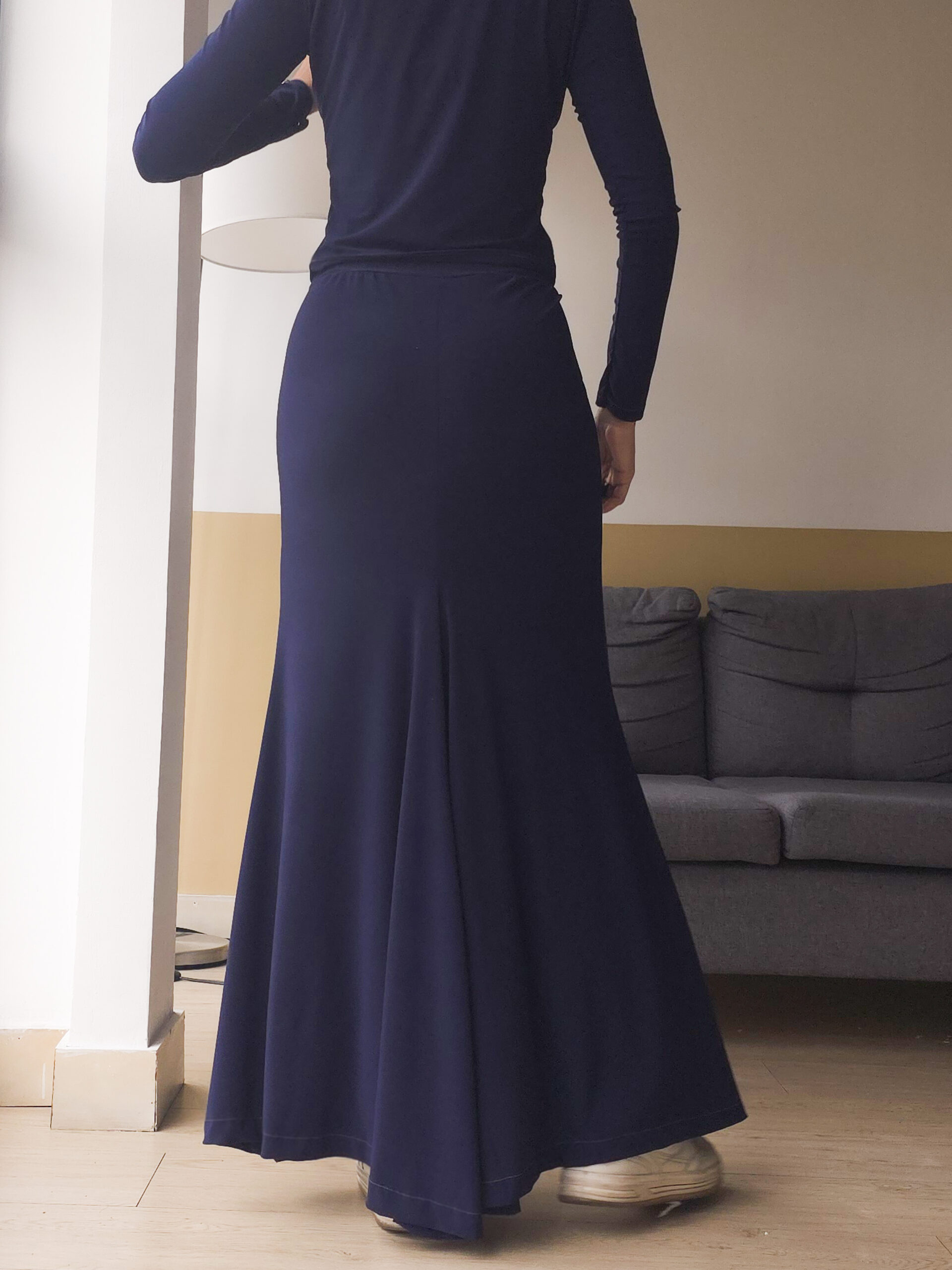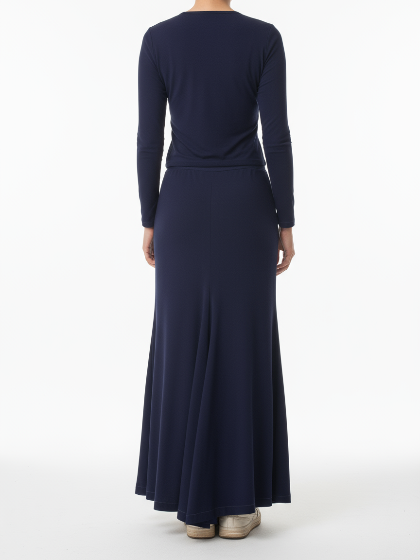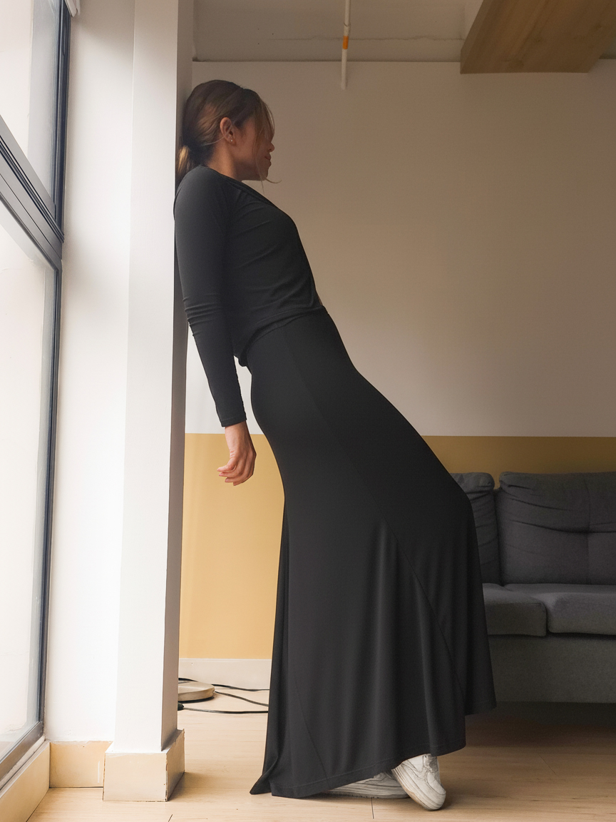 Una falda clásica, elegante y casual a la vez, tiene una caída magnífica y un corte atrás que la hace ver con estilo de cola larga pero lo suficientemente cómoda para vestir. Semi ajustada, larga con pretina delgada. Elaborada en acetato tela suave y liviana.