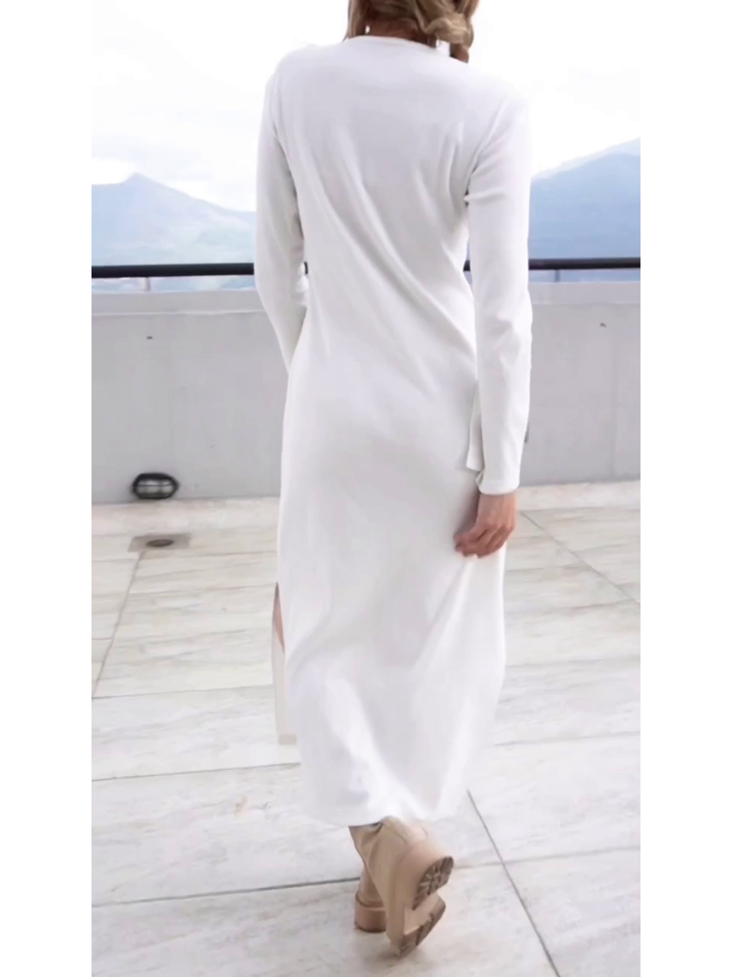Espectacular vestido manga larga con detalle de aberturas en el puño, y aberturas en piernas hasta la rodilla.